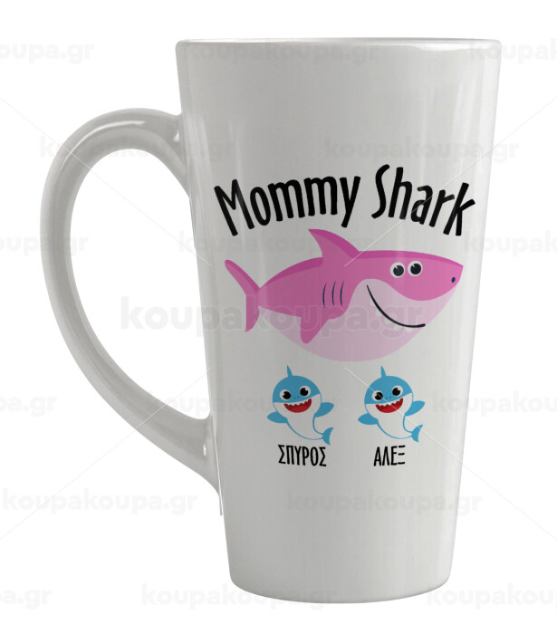 Mommy Shark (με ονόματα παιδικά), Κούπα κωνική Latte Μεγάλη, κεραμική, 450ml