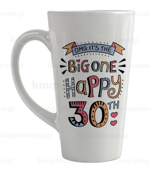 Big one Happy 30th, Κούπα κωνική Latte Μεγάλη, κεραμική, 450ml