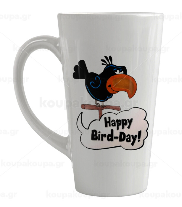 Happy Bird Day, Κούπα κωνική Latte Μεγάλη, κεραμική, 450ml