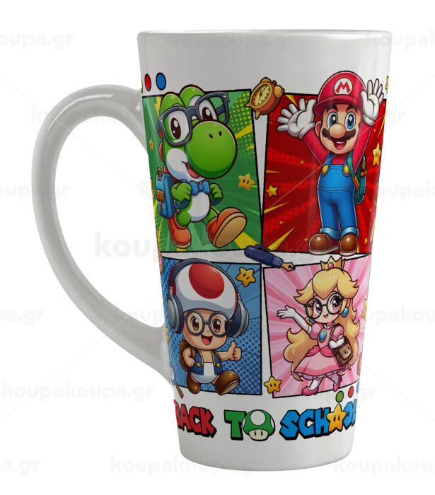 Back to the School Mario & Friends, Κούπα κωνική Latte Μεγάλη, κεραμική, 450ml