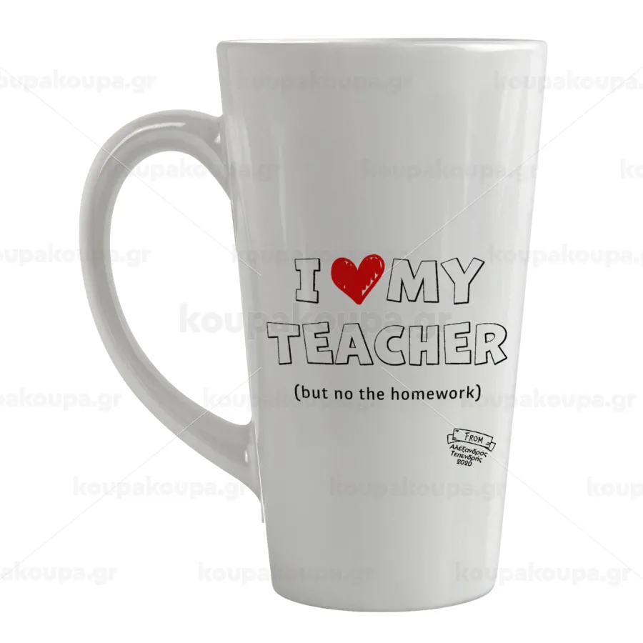 i love my teacher but no the homework outline, Κούπα κωνική Latte Μεγάλη, κεραμική, 450ml