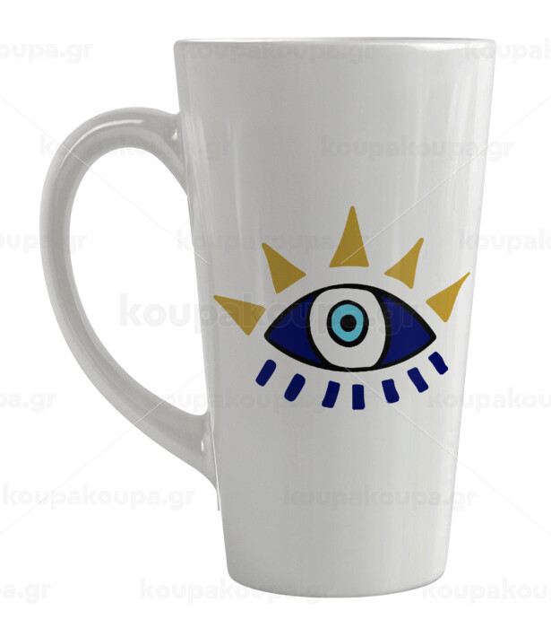 blue evil eye, Κούπα κωνική Latte Μεγάλη, κεραμική, 450ml
