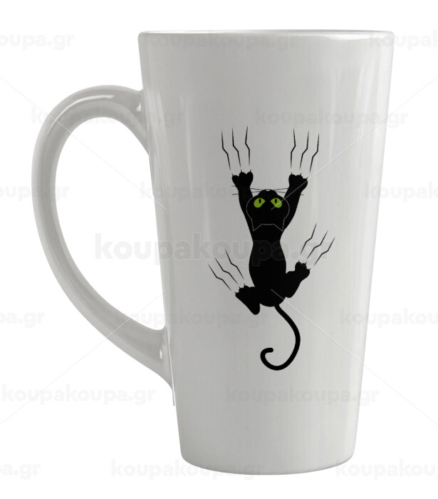 cat grabbing, Κούπα κωνική Latte Μεγάλη, κεραμική, 450ml