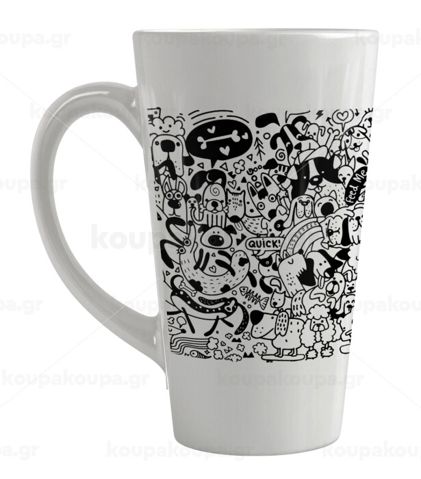 DOG pattern, Κούπα κωνική Latte Μεγάλη, κεραμική, 450ml