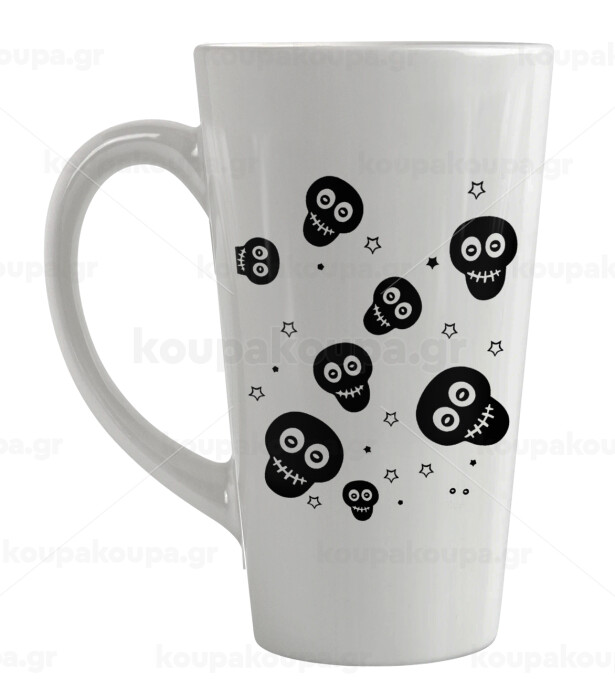 Large glossy conical latte cup of excellent quality with vibrant colors. Dishwasher safe, suitable for microwave oven. Use it for hot and cold drinks.