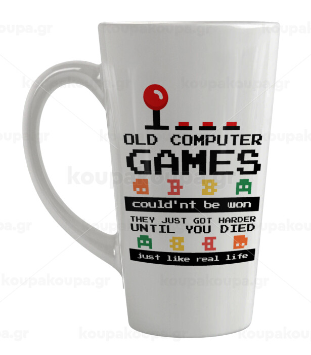 OLD computer games couldn't be won just like real life!, Κούπα κωνική Latte Μεγάλη, κεραμική, 450ml