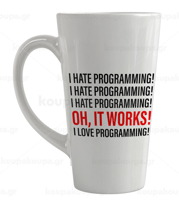 I hate programming!!!, Κούπα κωνική Latte Μεγάλη, κεραμική, 450ml
