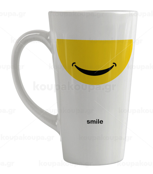 Smile Mug, Κούπα κωνική Latte Μεγάλη, κεραμική, 450ml