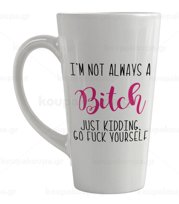 I'm not always a bitch, just kidding go f..k yourself , Κούπα κωνική Latte Μεγάλη, κεραμική, 450ml