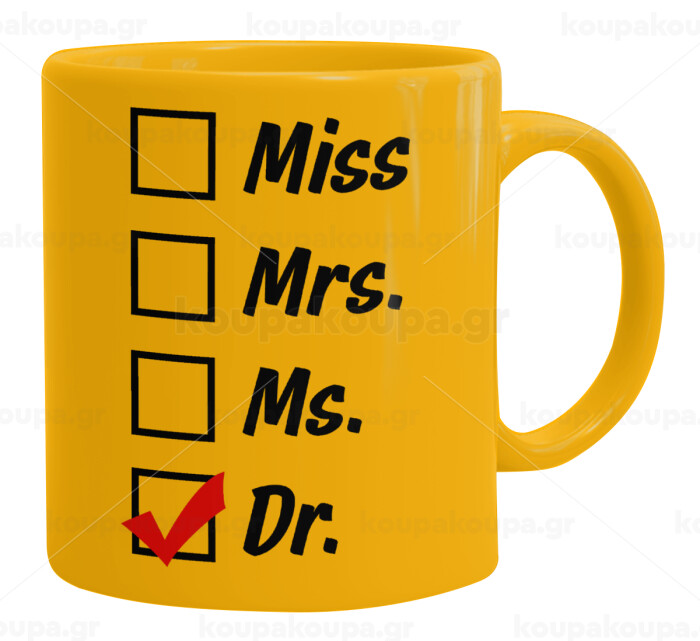 Miss, Mrs, Ms, DR, Ceramic coffee mug yellow, 330ml
