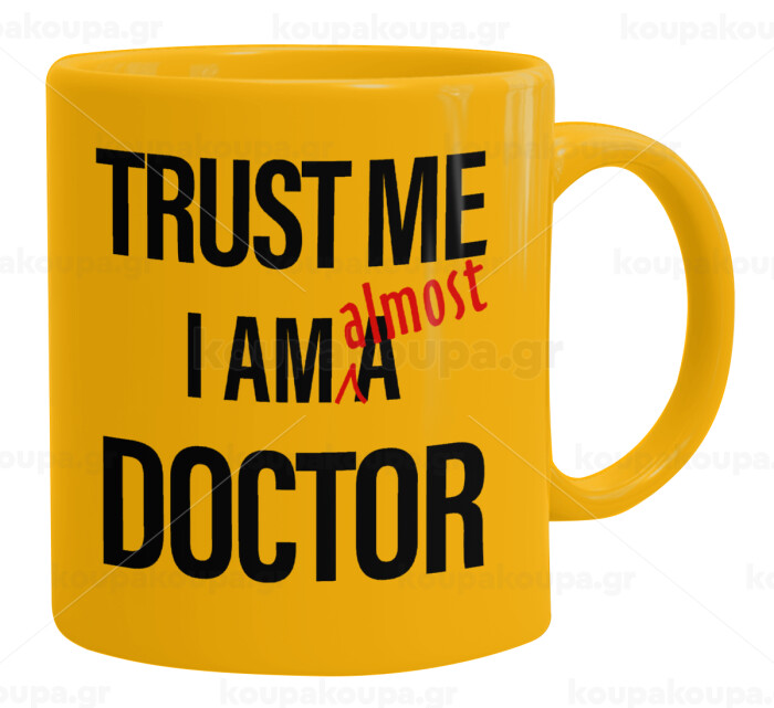 Trust me, i am (almost) Doctor, Ceramic coffee mug yellow, 330ml