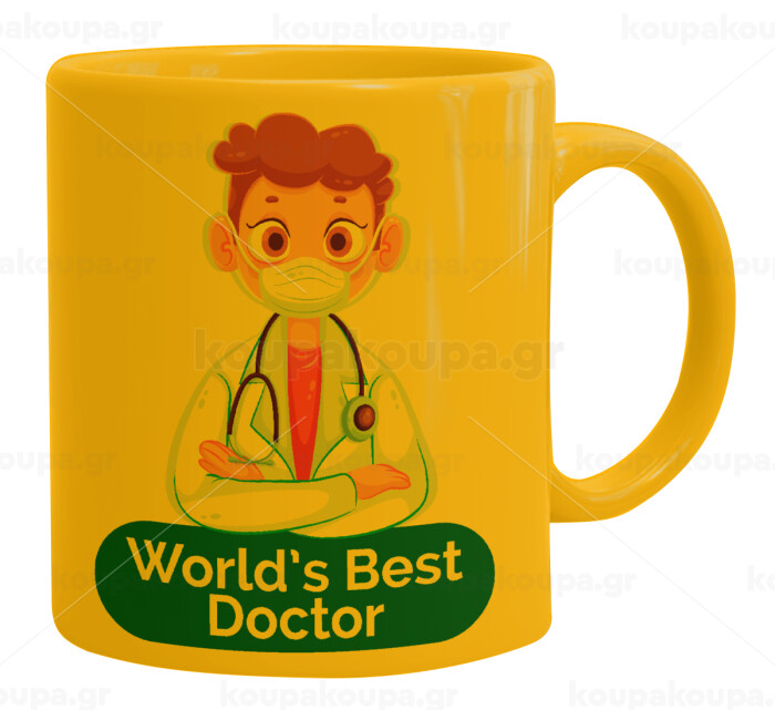 World's Best Doctor, Ceramic coffee mug yellow, 330ml