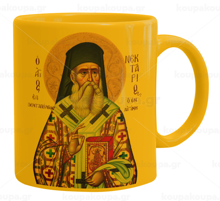 Saint Nektarios, Ceramic coffee mug yellow, 330ml