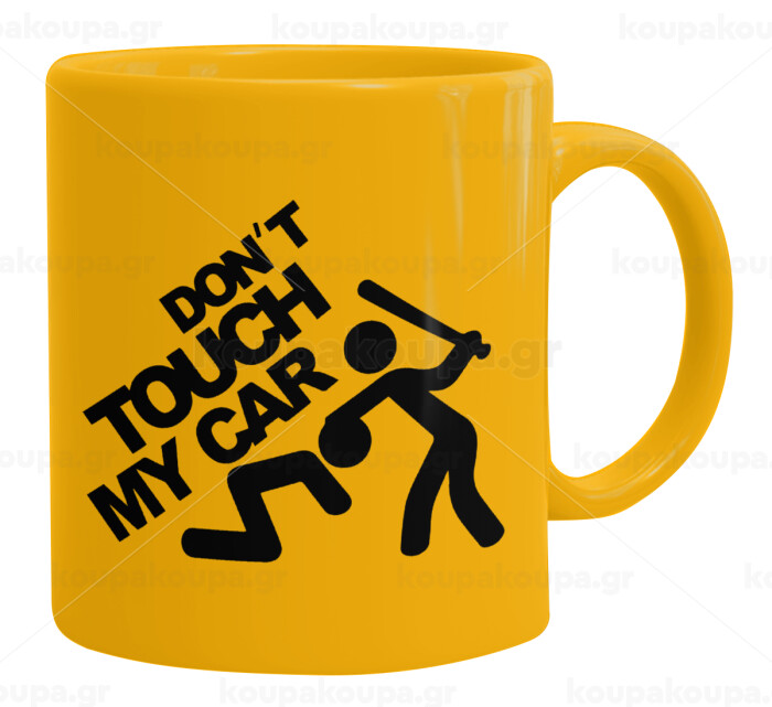 Don't touch my car, Ceramic coffee mug yellow, 330ml
