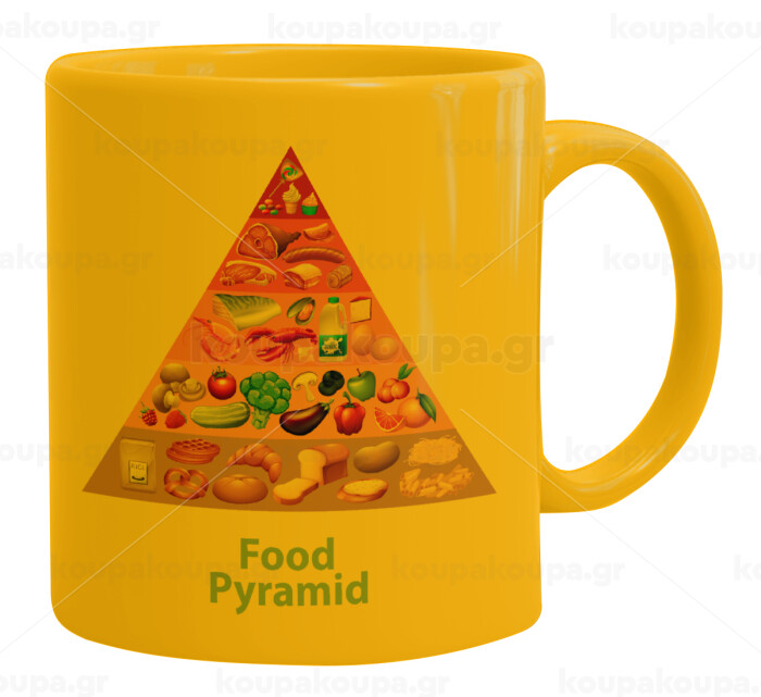 Food pyramid chart, Ceramic coffee mug yellow, 330ml
