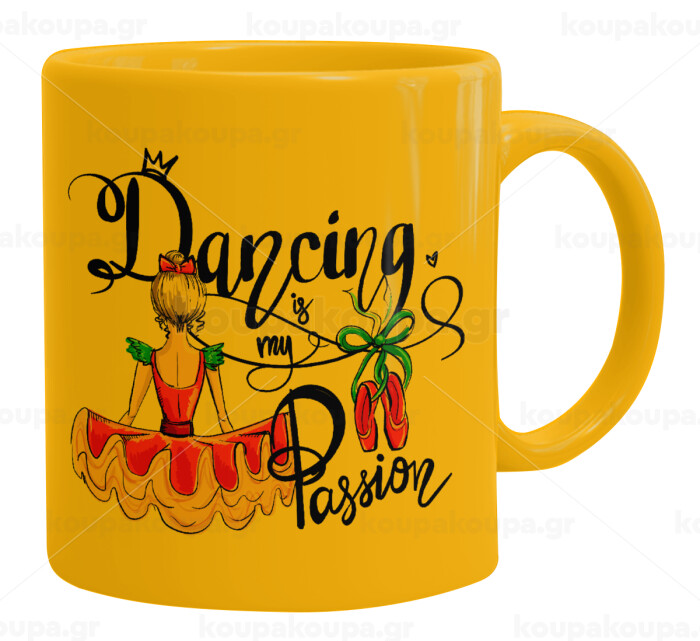Dancing is my Passion, Ceramic coffee mug yellow, 330ml