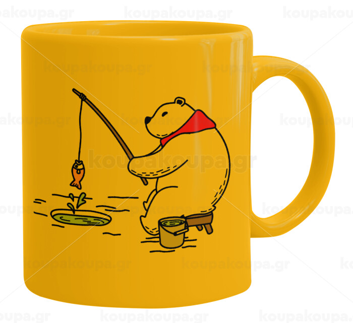 Bear fishing, Ceramic coffee mug yellow, 330ml