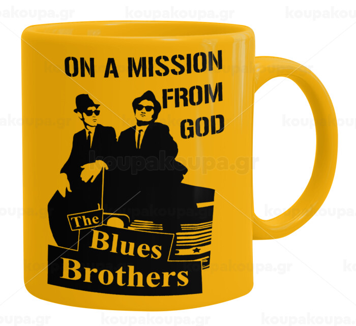 Blues brothers on a mission from God, Ceramic coffee mug yellow, 330ml