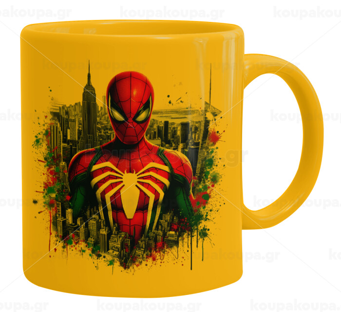 Spiderman City, Ceramic coffee mug yellow, 330ml