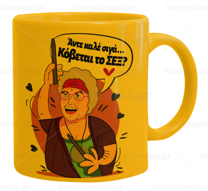 Αντε καλέ, σιγά, κόβεται το σέξ ;, Ceramic coffee mug yellow, 330ml