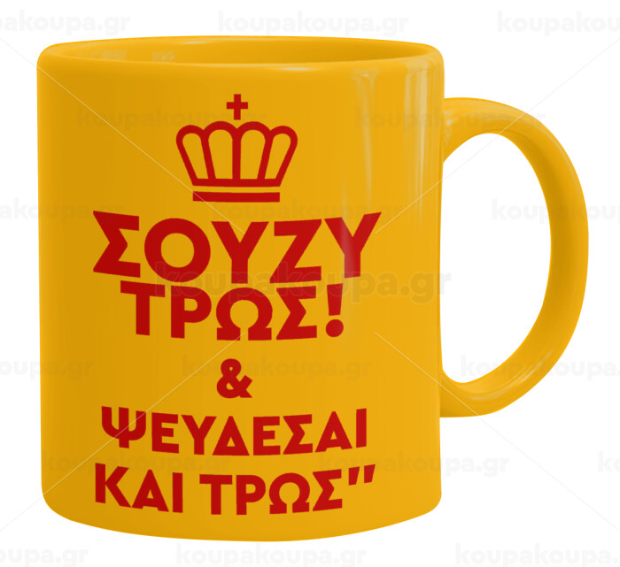 Σούζυ και ψεύδεσαι και τρως, Ceramic coffee mug yellow, 330ml