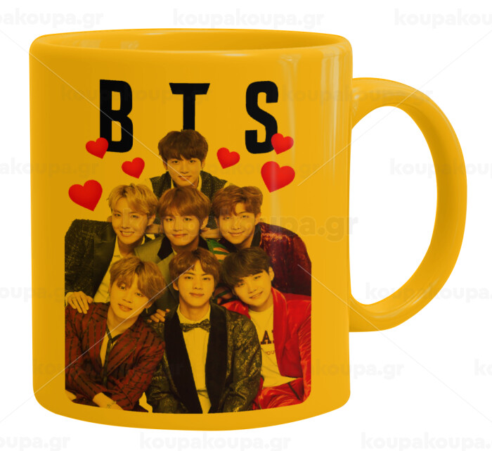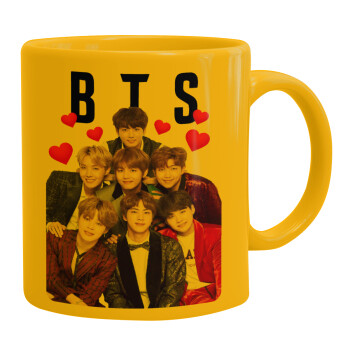 BTS hearts, Ceramic coffee mug yellow, 330ml