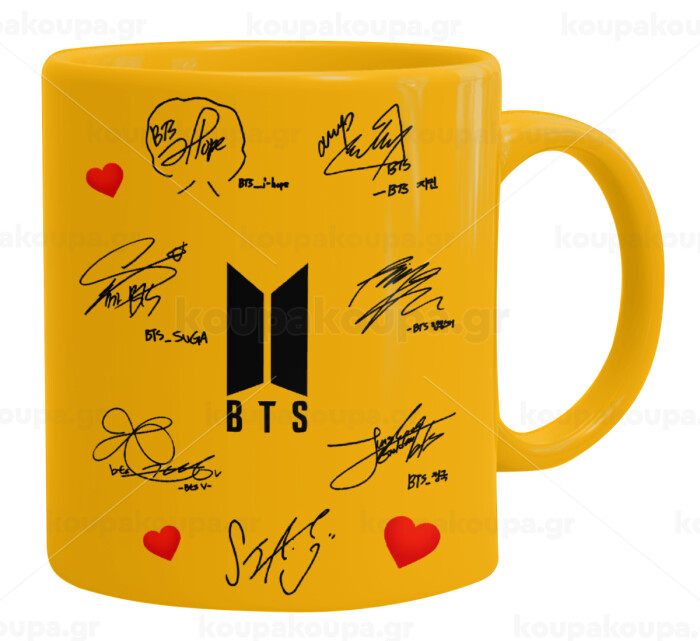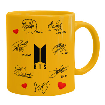 BTS signatures, Ceramic coffee mug yellow, 330ml