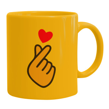 Korean Finger Heart, Ceramic coffee mug yellow, 330ml