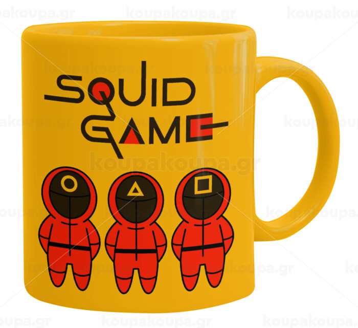 The squid game characters, Ceramic coffee mug yellow, 330ml