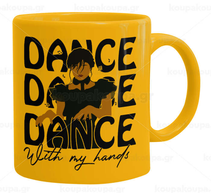Wednesday dance dance dance, Ceramic coffee mug yellow, 330ml