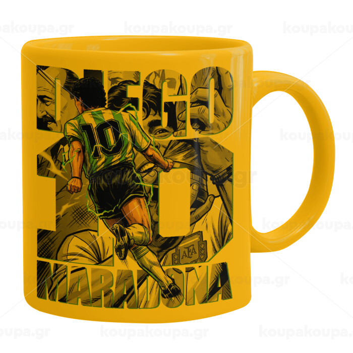 Diego Maradona (Ντιέγκο Μαραντόνα), Ceramic coffee mug yellow, 330ml