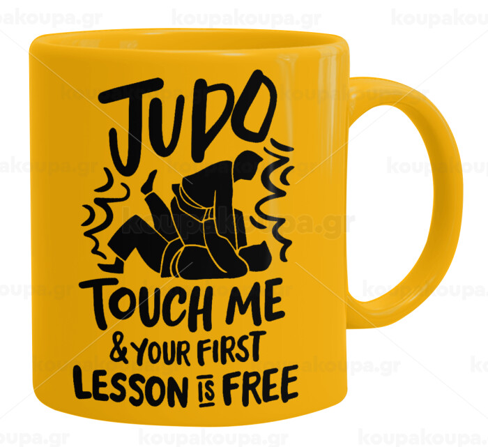 Judo Touch Me And Your First Lesson Is Free, Ceramic coffee mug yellow, 330ml