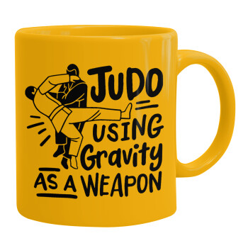 Judo using gravity as a weapon, Ceramic coffee mug yellow, 330ml