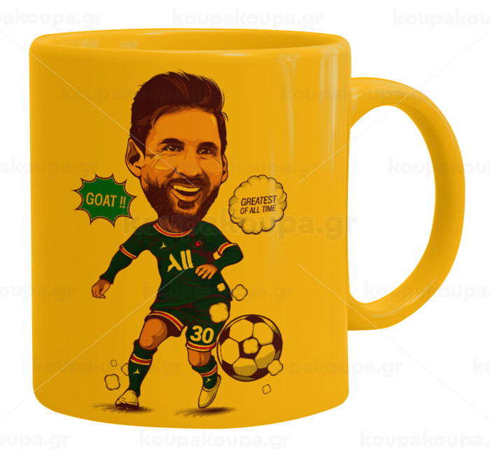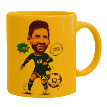 Lionel Messi drawing, Ceramic coffee mug yellow, 330ml