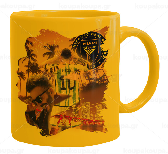 Lionel Messi Miami, Ceramic coffee mug yellow, 330ml