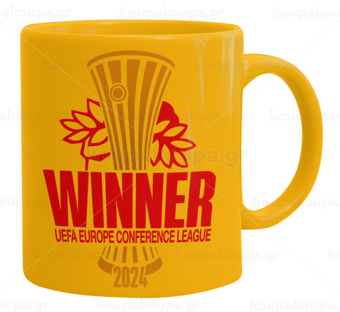 Europa Conference League WINNER, Ceramic coffee mug yellow, 330ml