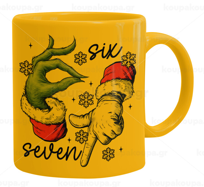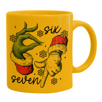 Christmas Meme SIX SEVEN (67), Ceramic coffee mug yellow, 330ml
