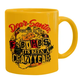 Dear Santa, sorry for all the F-bombs, Ceramic coffee mug yellow, 330ml