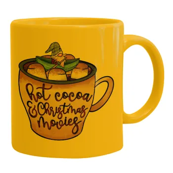 Hot Cocoa And Christmas Movies, Ceramic coffee mug yellow, 330ml