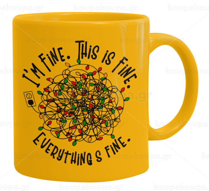 It's Fine I'm Fine Everything Is Fine, Ceramic coffee mug yellow, 330ml