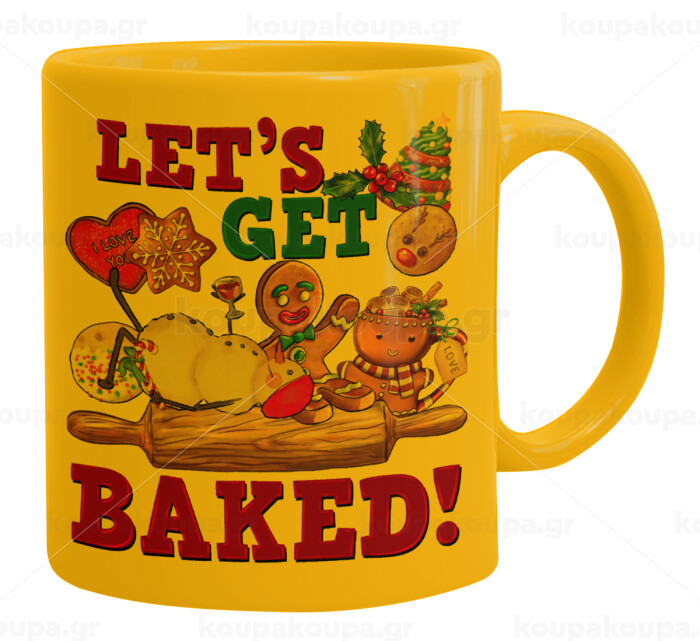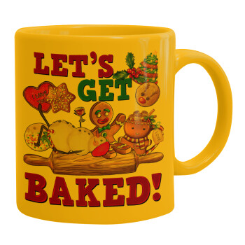 Let's get baked, Ceramic coffee mug yellow, 330ml