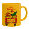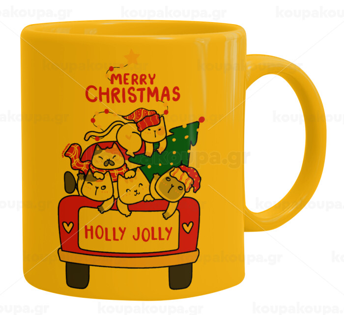 Merry Christmas cats in car, Ceramic coffee mug yellow, 330ml