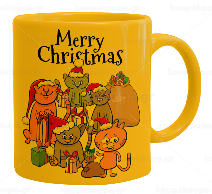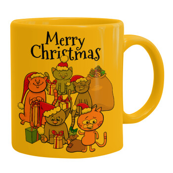 Merry Christmas Cats, Ceramic coffee mug yellow, 330ml