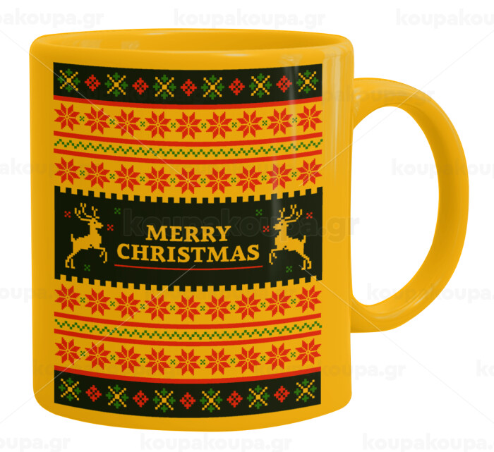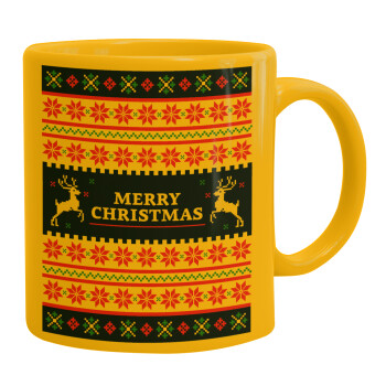 Merry Christmas Vintage, Ceramic coffee mug yellow, 330ml