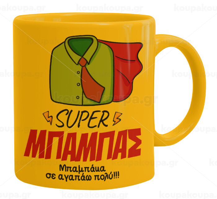 SUPER ΜΠΑΜΠΑΣ, Ceramic coffee mug yellow, 330ml