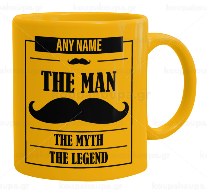 The man, the myth, Ceramic coffee mug yellow, 330ml
