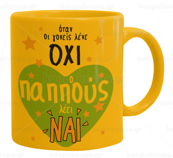 Όταν οι γονείς λένε ΟΧΙ, ο παππούς λέει ΝΑΙ, Ceramic coffee mug yellow, 330ml
