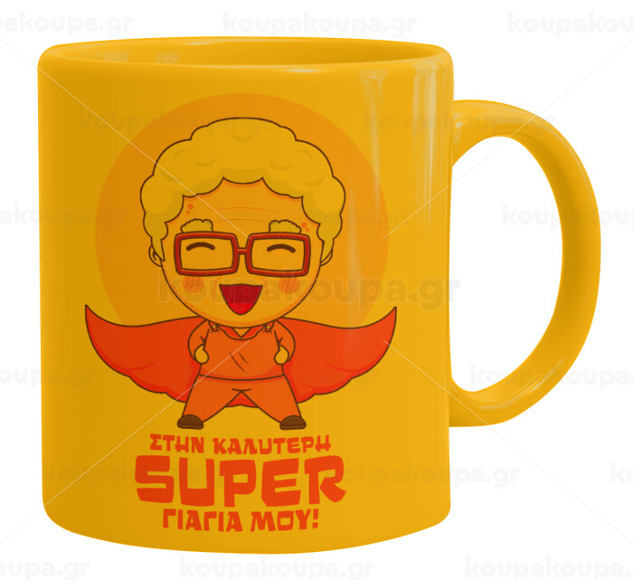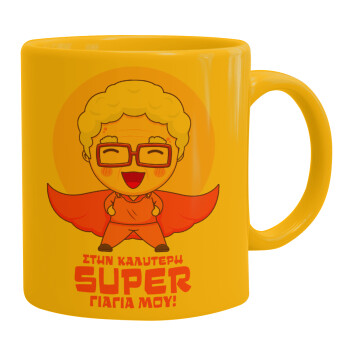 To my best Super Grandma!, Ceramic coffee mug yellow, 330ml