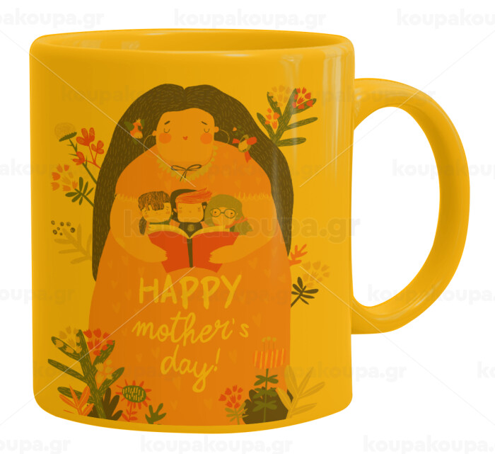 Cute mother reading book, happy mothers day, Ceramic coffee mug yellow, 330ml