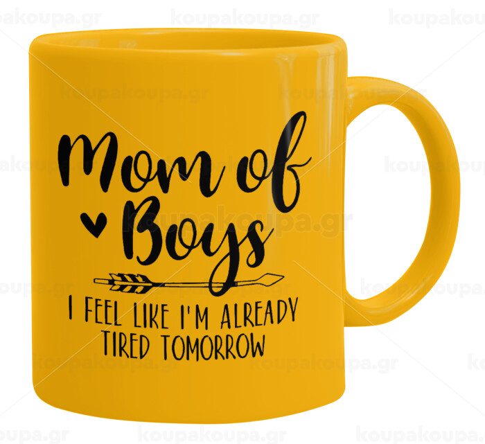 Mom of boys i feel like im already tired tomorrow, Ceramic coffee mug yellow, 330ml